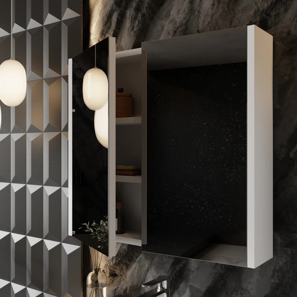L’armoire de toilette Venus avec miroir 80 cm apporte luminosité et élégance à la salle de bain. Sa façade miroir associée à une finition blanche moderne reflète la lumière et agrandit visuellement l’espace. Sa largeur de 80 cm offre un équilibre idéal entre surface miroir et rangement, s’intégrant facilement dans les salles de bain modernes ou classiques.
