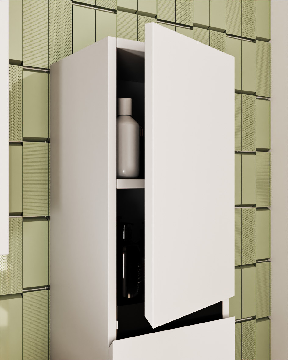 L'armoire haute « Venus » est un meuble de salle de bains au design futuriste. Sa finition blanche brillante confère à cette armoire murale une allure harmonieuse et élégante, qu'elle peut être sublimée par des accessoires assortis.