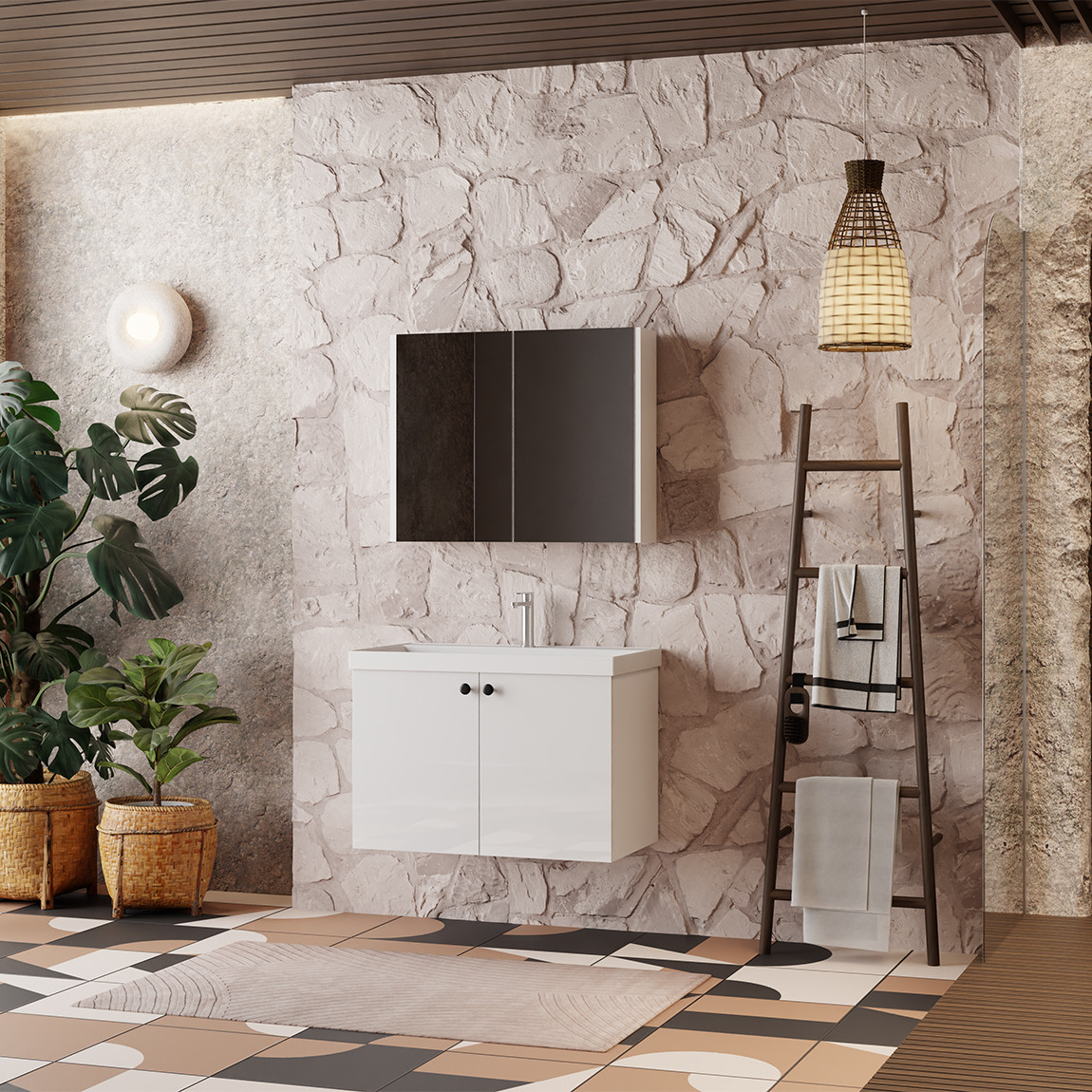 | Composants | Meuble sous-vasque + lavabo + armoire miroir, portes avec soft-close |